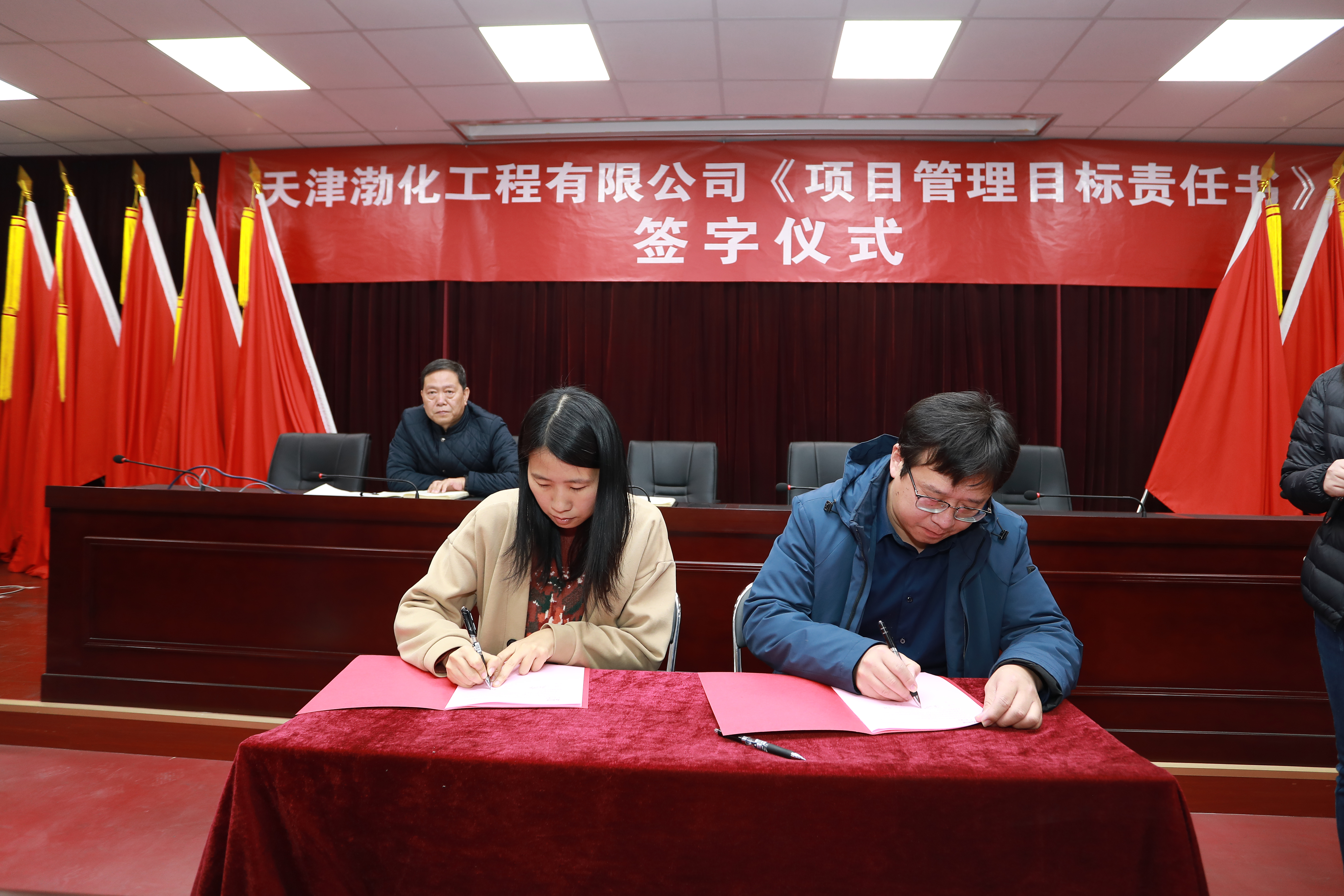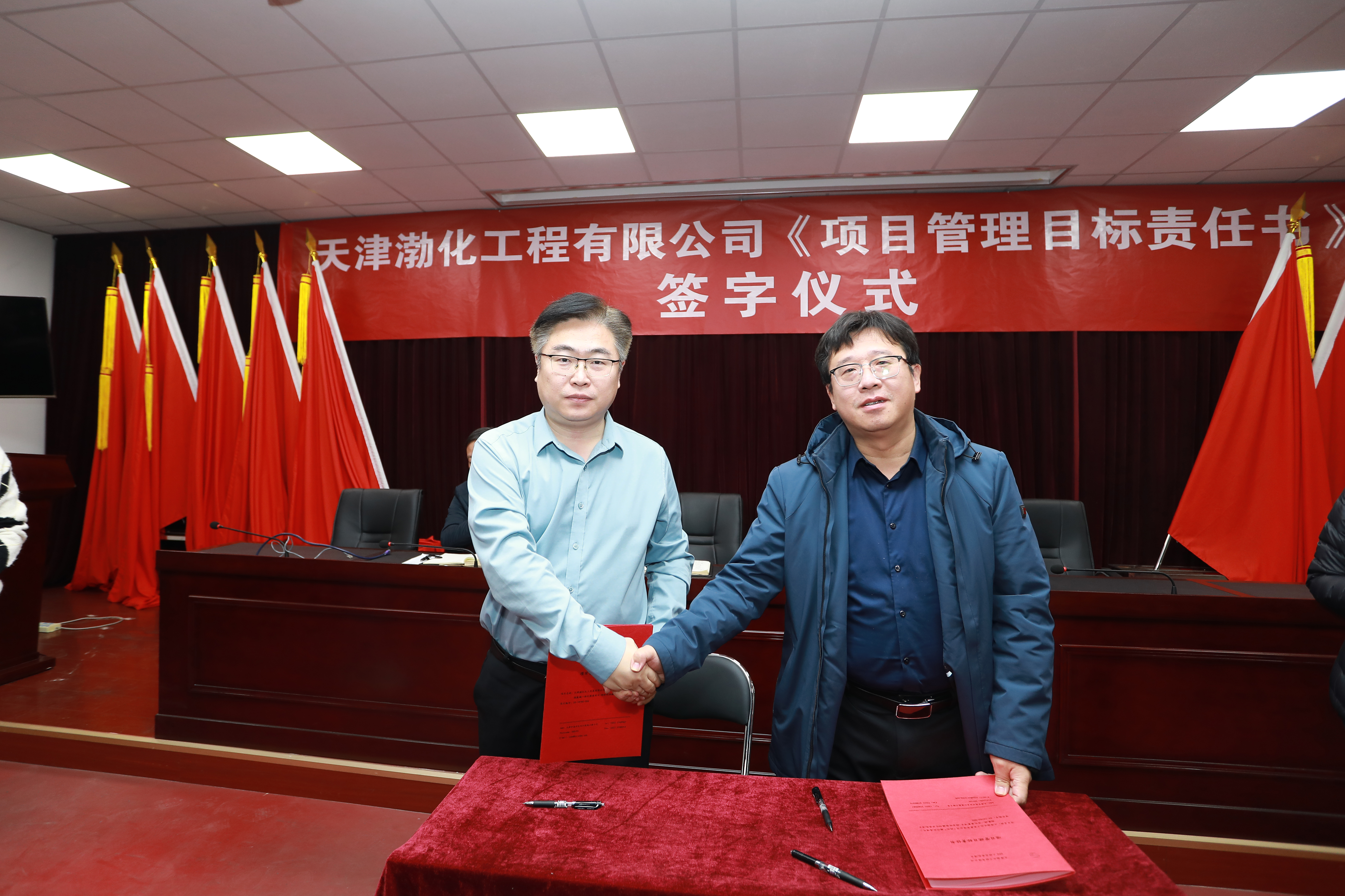 會(huì)上,黨委書記、董事長(zhǎng)詹宏智與“兩化”二期30萬(wàn)噸/年離子膜燒堿項(xiàng)目、渤化發(fā)展綜合實(shí)驗(yàn)樓EPC總承包項(xiàng)目、渤化發(fā)展12萬(wàn)噸/年糊樹脂裝置項(xiàng)目的項(xiàng)目經(jīng)理簽訂了《項(xiàng)目管理目標(biāo)責(zé)任書》。