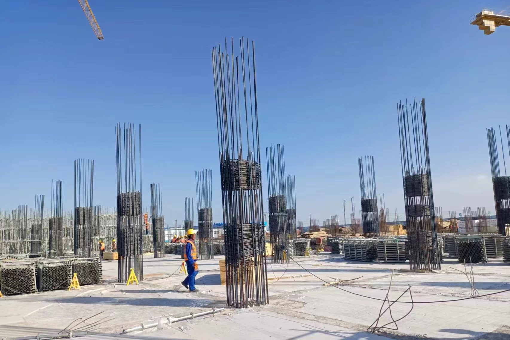 渤化集團副總工程師、研究總院院長武春雷,渤化集團科創(chuàng)部副部長、研究總院副院長殷伊琳,天津大沽化工有限公司副總經理、研究總院副院長王華偉,天津渤化化工發(fā)展有限公司副總經理李春耕,研發(fā)中心副主任、項目經理王雷博士,設備工程部副部長王秀航,項目承建方天津渤化工程有限公司和中建安裝集團有限公司的項目組人員陪同調研交流。在項目現(xiàn)場,武春雷詳細介紹了綜合實驗樓項目的規(guī)模、功能分區(qū)和建設情況。