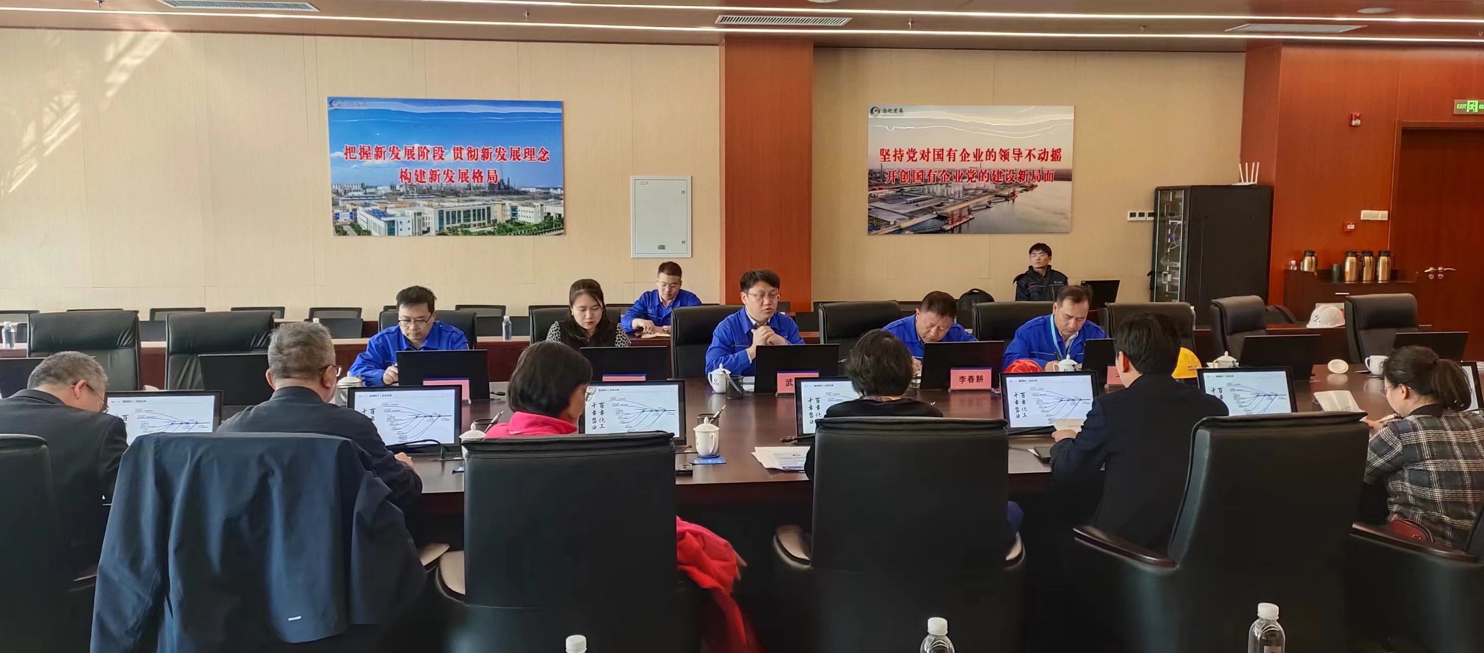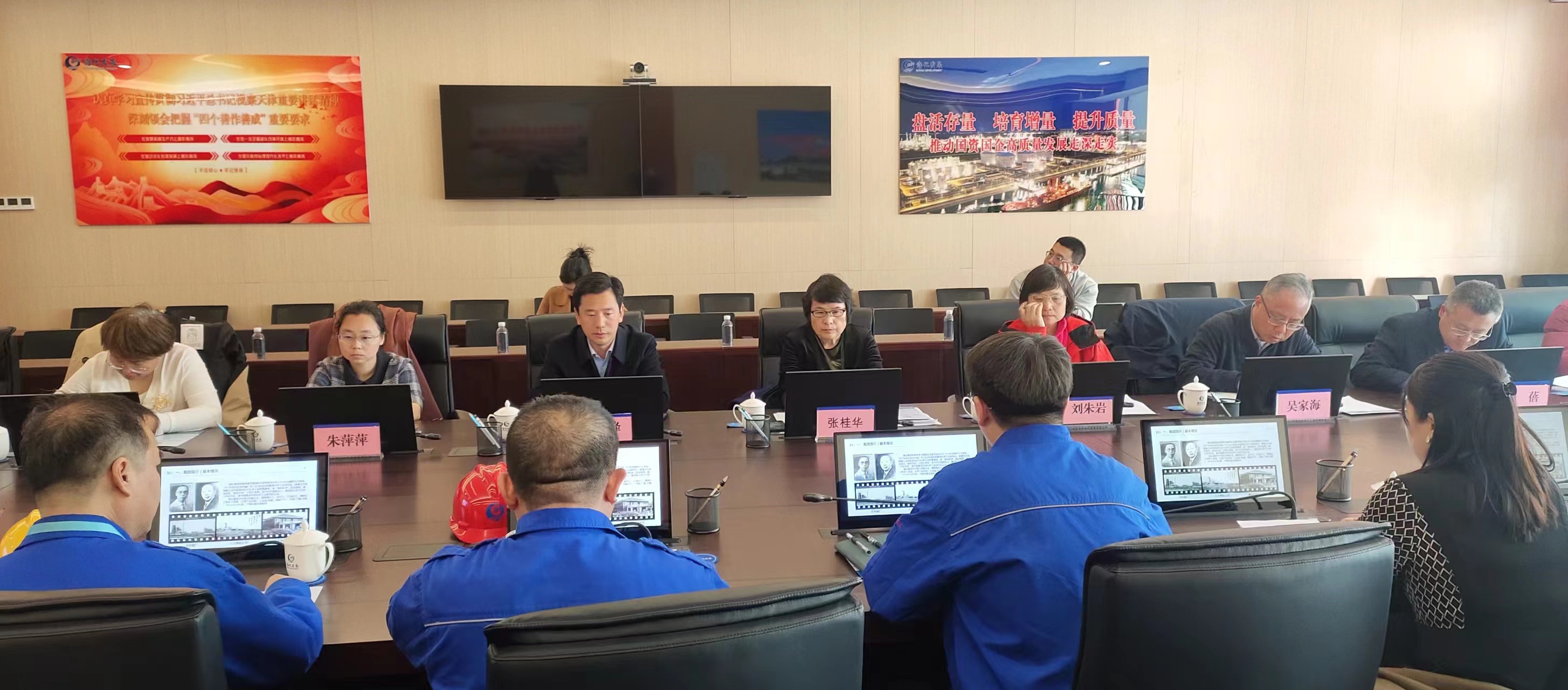 隨后,一行人來到實訓基地會議室進行座談,武春雷詳細介紹了渤化集團的產業(yè)結構、研究總院的起源、科技延承等情況。張桂華區(qū)長詳細了解了渤化集團關于品牌推廣、氫能利用、院所合作、文化建設、體系建設等方面情況,對相關工作給予了充分的肯定并提出了指導性意見。
