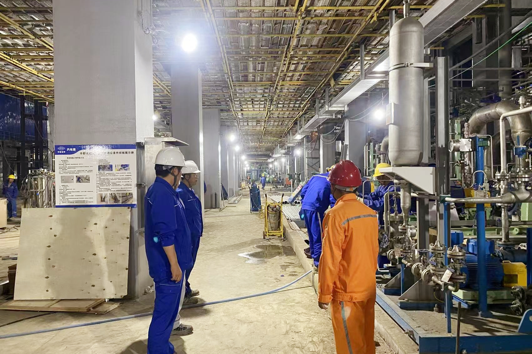中秋慰問(wèn)暖工地,齊心協(xié)力保中交——渤化工程辛醇優(yōu)化及安全提升項(xiàng)目開(kāi)展中秋節(jié)現(xiàn)場(chǎng)慰問(wèn)活動(dòng) 2025-10-09 22:33:14 10月6日中秋節(jié),渤化工程安全總監(jiān)萬(wàn)玉輝代表公司慰問(wèn)一線,將節(jié)日關(guān)懷與暖心物資送到現(xiàn)場(chǎng)的工人手中,讓佳節(jié)溫暖在工地蔓延。 目前,辛醇項(xiàng)目現(xiàn)場(chǎng)的施工人員約560人,正在進(jìn)行管道安裝收尾、全面管道試壓、電纜的敷設(shè)和接線工作,加班加點(diǎn)為10月31日的中交節(jié)點(diǎn)沖刺。 渤化工程向現(xiàn)場(chǎng)工作人員分發(fā)了豬肉、月餅等慰問(wèn)品,并對(duì)大家放棄節(jié)日休假、全力推進(jìn)項(xiàng)目建設(shè)的奉獻(xiàn)精神表示敬意,讓員工在安心工作的同時(shí),感受到“第二故鄉(xiāng)"的溫情。各參建單位表示,會(huì)將這份關(guān)懷轉(zhuǎn)化為工作動(dòng)力,嚴(yán)格把控項(xiàng)目質(zhì)量與進(jìn)度,以實(shí)際行動(dòng)確保項(xiàng)目如期交付,為目標(biāo)達(dá)成貢獻(xiàn)奮進(jìn)力量。