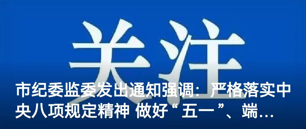 "五一"、端午將至,為嚴(yán)格落實(shí)中央八項(xiàng)規(guī)定精神,持續(xù)糾"四風(fēng)"樹新風(fēng),保持廉潔文明節(jié)儉的節(jié)日風(fēng)氣,市紀(jì)委監(jiān)委日前印發(fā)通知。 通知指出,要嚴(yán)…