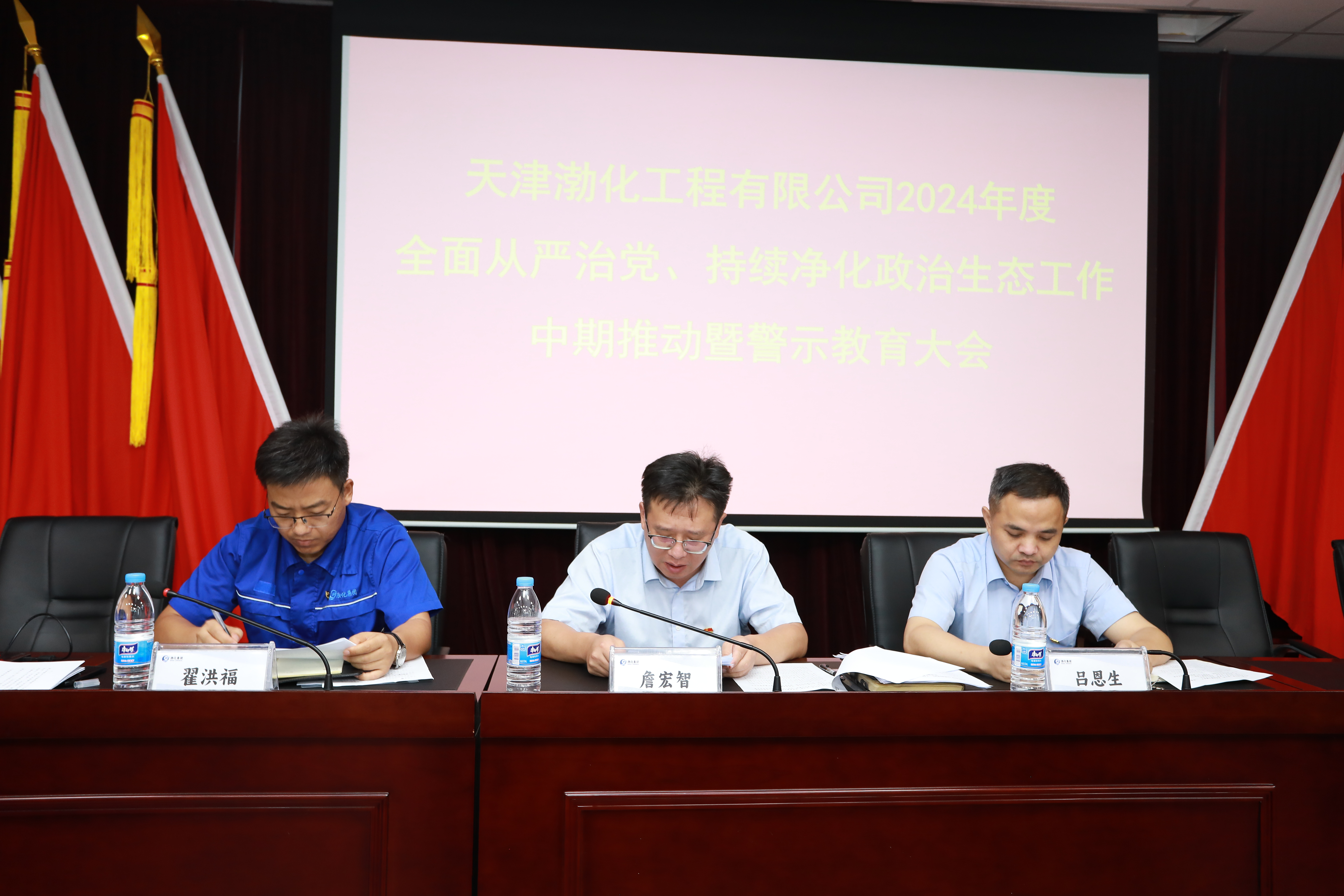8月27日,渤化工程黨委組織召開了2024年度全面從嚴(yán)治黨、持續(xù)凈化政治生態(tài)工作中期推動會暨警示教育大會?!?