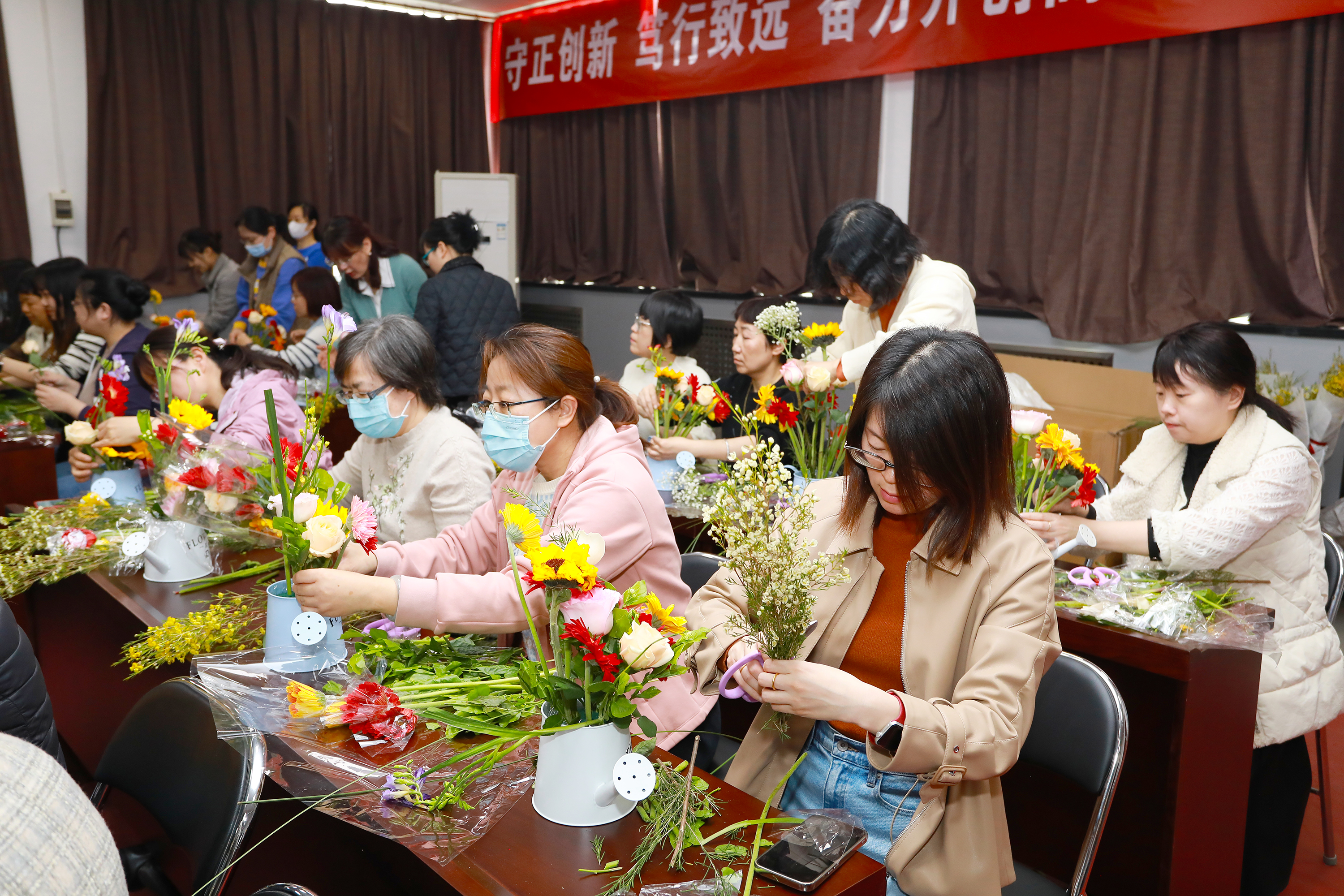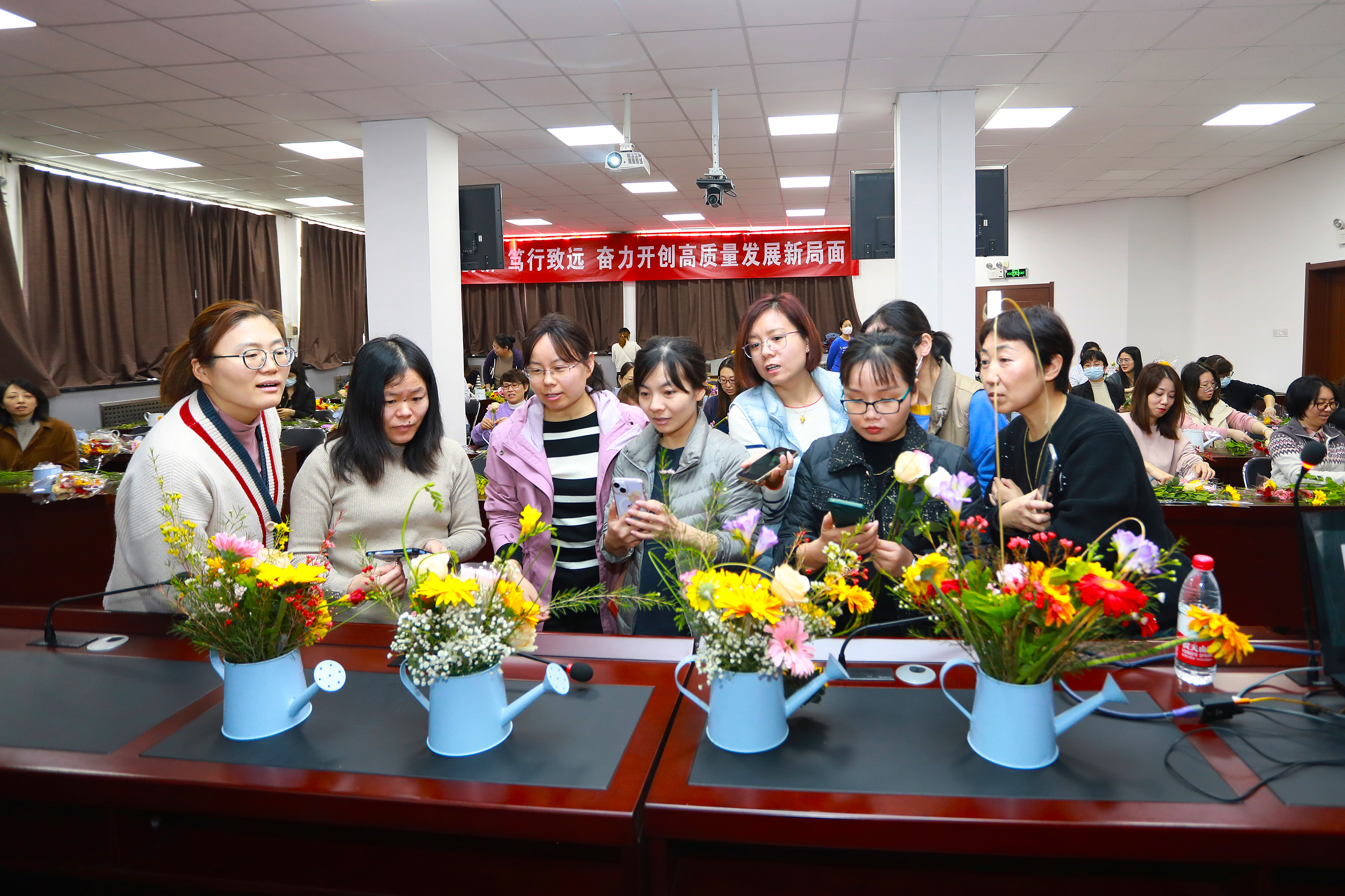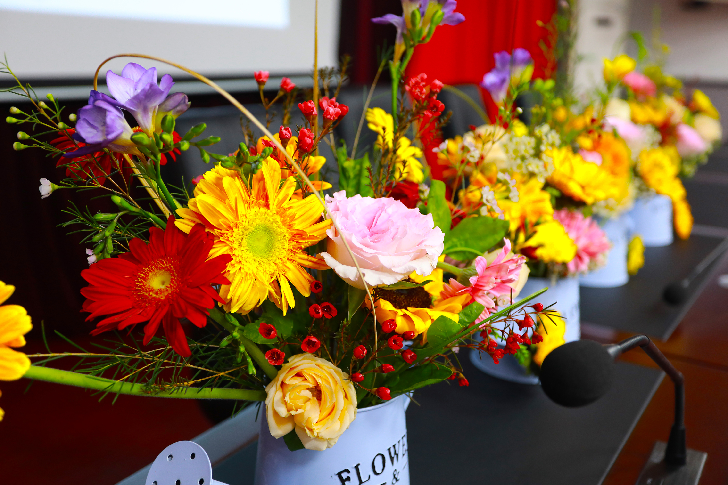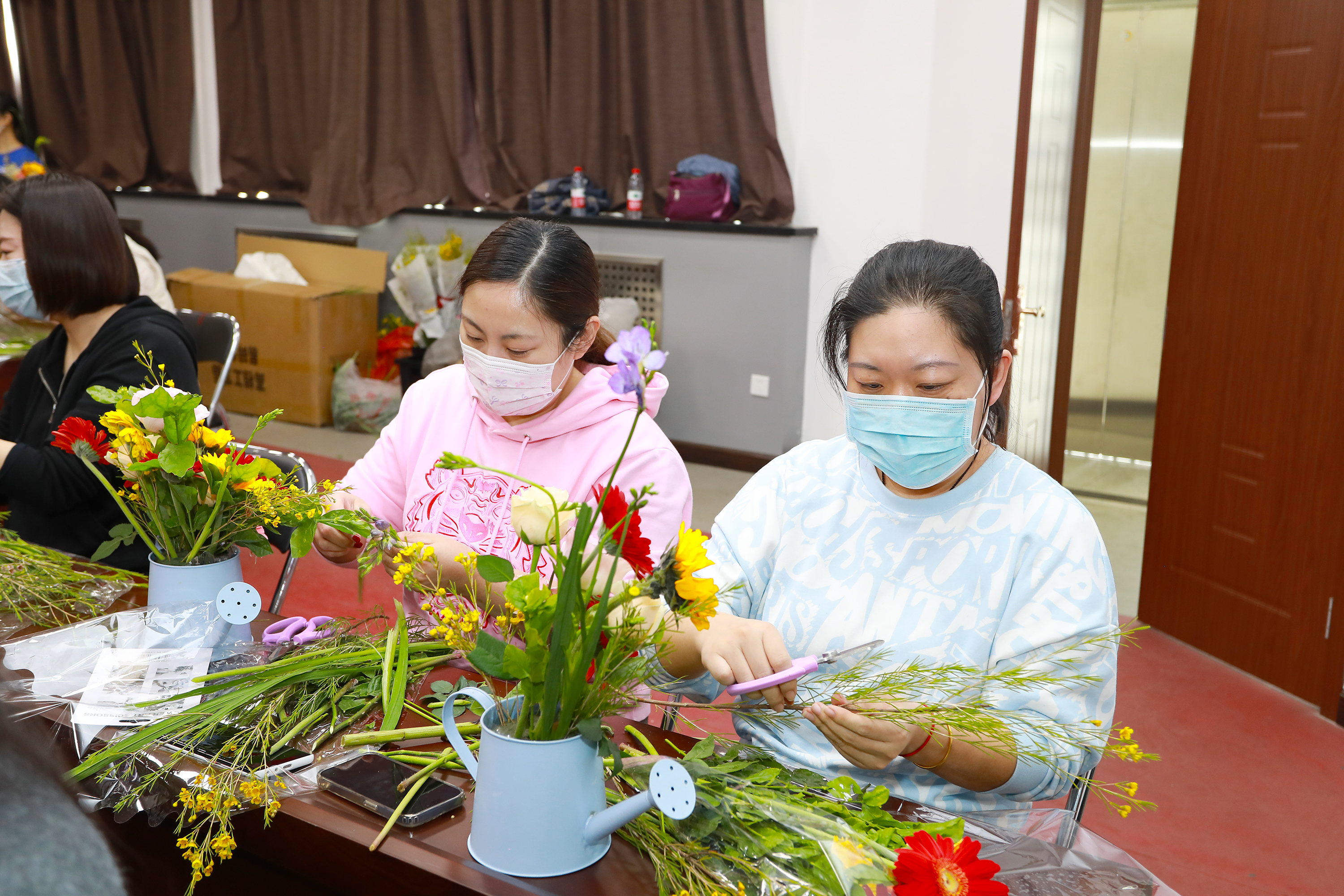 本次活動(dòng)邀請(qǐng)了擁有多年插花經(jīng)驗(yàn)的花藝?yán)蠋?,從鮮花的品種、寓意和養(yǎng)護(hù),到花卉的選擇、顏色的搭配、花枝的修剪等插花技巧進(jìn)行了詳細(xì)講授,并現(xiàn)場(chǎng)示范指導(dǎo)大家進(jìn)行DIY插花。一支支清新淡雅的康乃馨,濃烈絢爛的紅玫瑰,金色活潑的向日葵…….經(jīng)過大家的巧手修枝剪葉及巧妙的創(chuàng)意組合,勾勒出一盆盆賞心悅目的插花作品?;顒?dòng)現(xiàn)場(chǎng)花香四溢,充滿了歡聲笑語。
