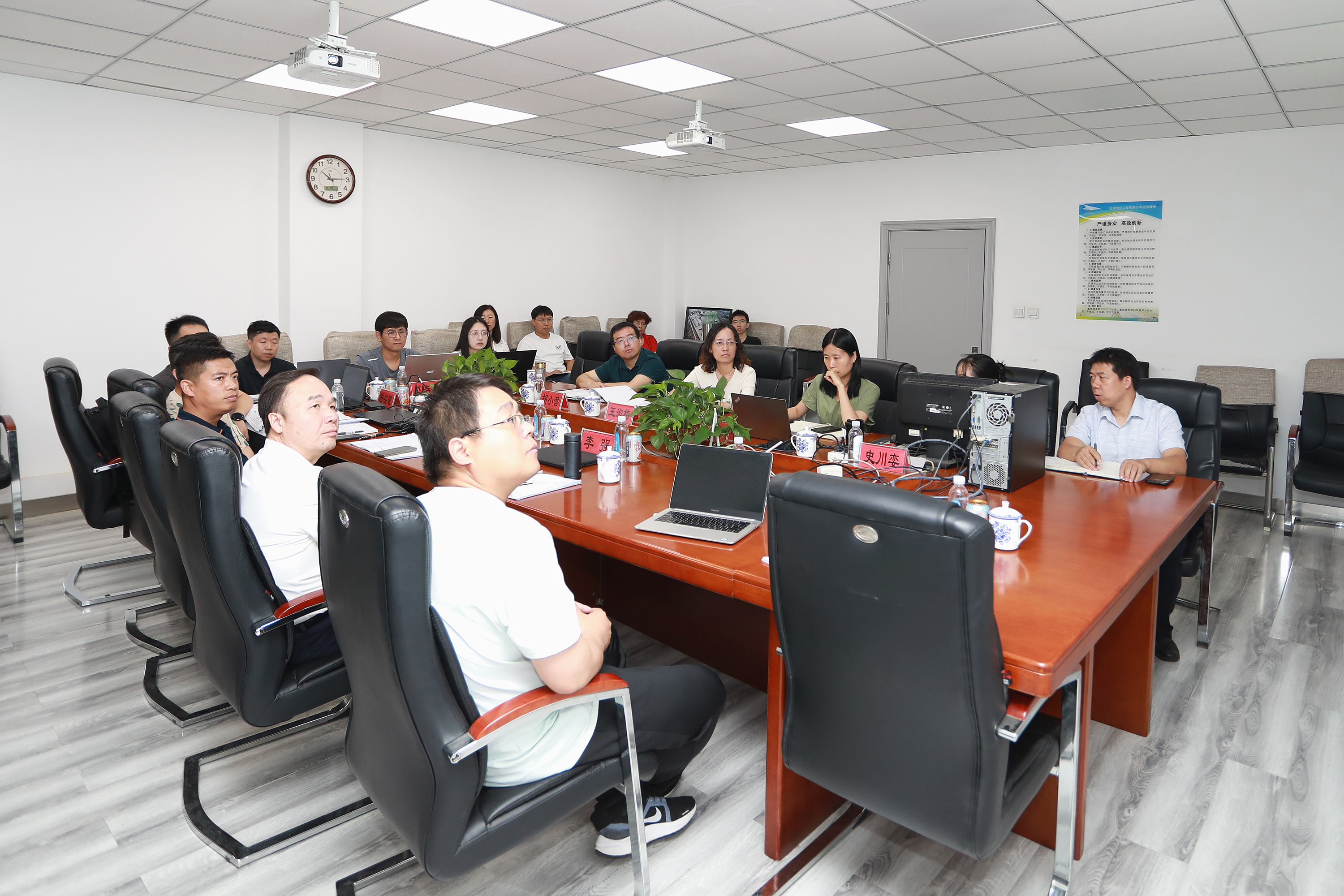 到訪技術(shù)專家對公司前期工作給予充分肯定,在審查工藝流程及三維模型過程中,重點針對“氧化單元”“鼓風(fēng)機房”“尾氣處理單元”等子項展開技術(shù)交流,各方就設(shè)計理念、行業(yè)現(xiàn)狀和現(xiàn)場情況交換了意見,并對下一步優(yōu)化設(shè)計方案、自控聯(lián)鎖方案和開停車方案等問題,進行了深入研討并達成一致意見。