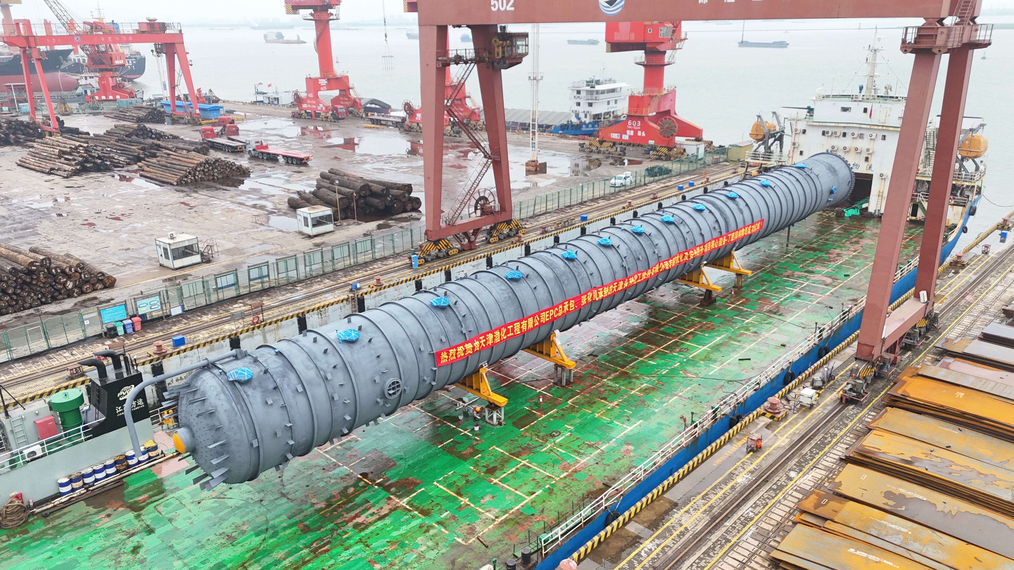 5點(diǎn)36分,在渤化永利、渤化工程、中化六建、大沽物流的協(xié)同配合、共同努力下,凈重達(dá)442噸的異構(gòu)物塔在特種運(yùn)輸車(chē)的緩緩牽引下,平穩(wěn)運(yùn)抵施工現(xiàn)場(chǎng)。這臺(tái)“龐然大物”的成功進(jìn)場(chǎng),不僅是項(xiàng)目建設(shè)的一個(gè)重要里程碑,也體現(xiàn)了項(xiàng)目團(tuán)隊(duì)在設(shè)備運(yùn)輸和安裝方面的精心策劃與高效執(zhí)行,為后續(xù)順利施工、年底全面竣工按下了“加速鍵”。