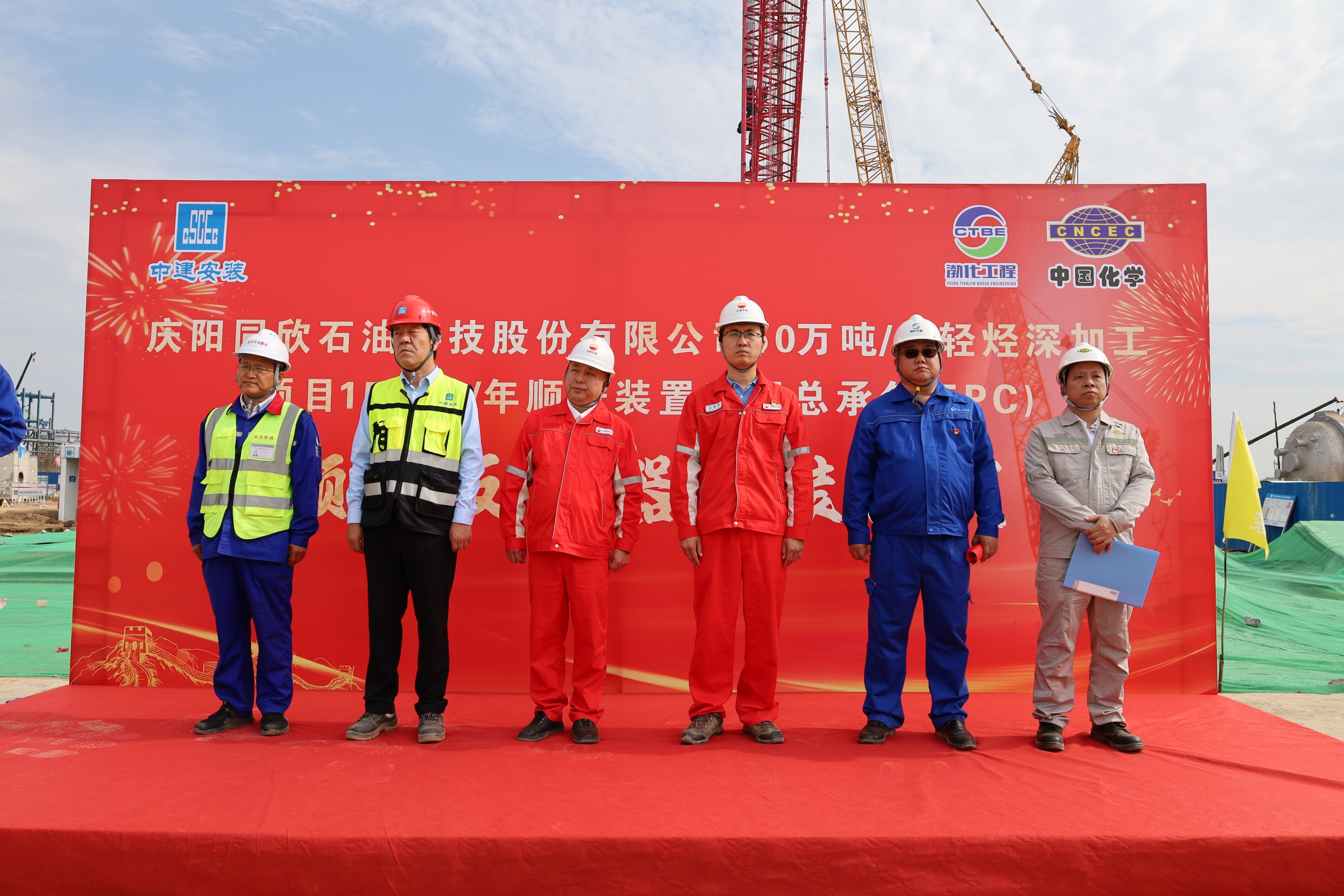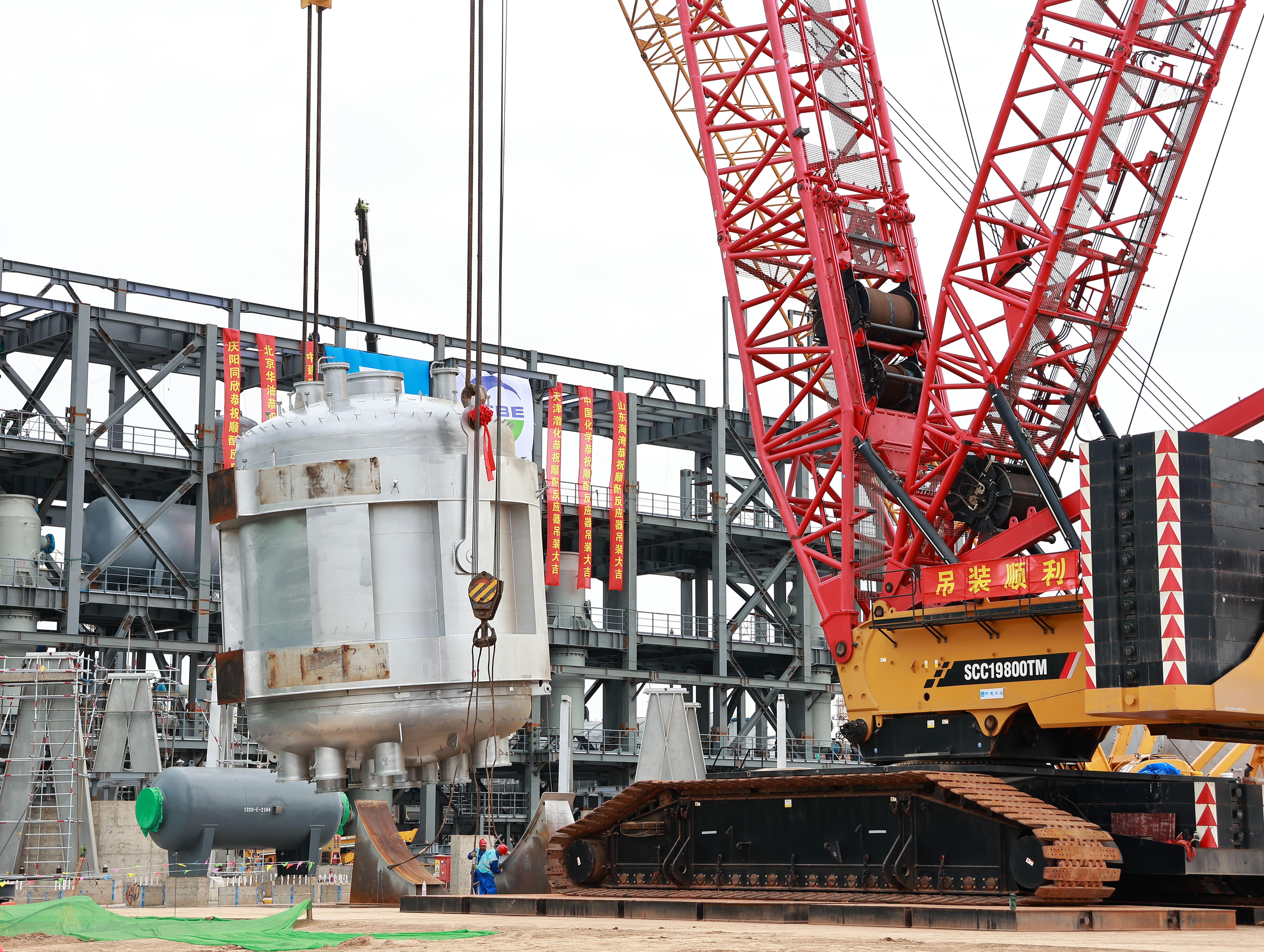 2025年6月19日,渤化工程總承包的慶陽同欣50萬噸/年輕烴深加工項目15萬噸/年順酐裝置項目現(xiàn)場,彩旗飄揚,氣氛熱烈。順酐裝置核心設(shè)備——順酐反應(yīng)器吊裝儀式在此隆重舉行,順酐反應(yīng)器起吊標(biāo)志著項目建設(shè)取得突破性進展,正式進入核心設(shè)備安裝階段。