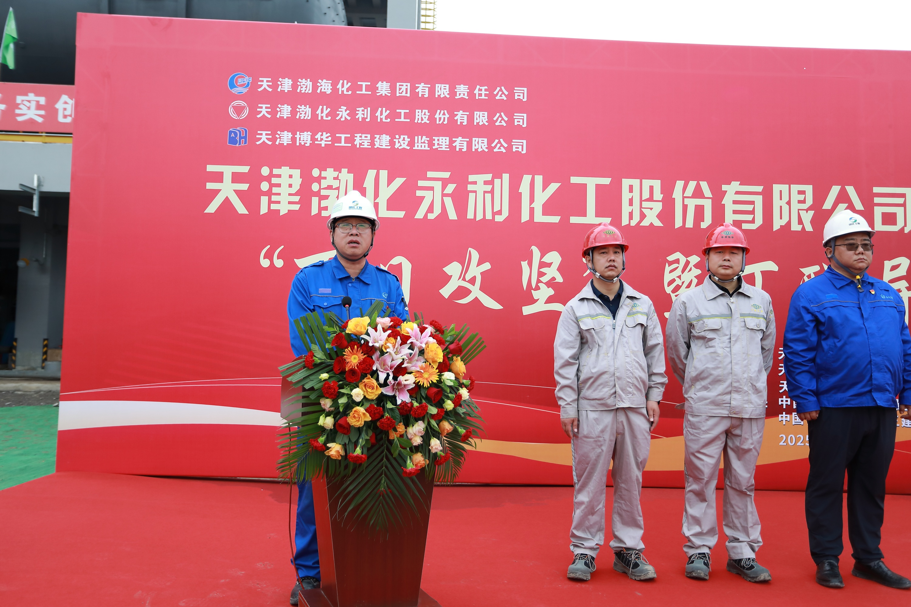 張曄輝、魏以峰分別講話,向為項目建設(shè)付出辛勤汗水的各參建單位致以誠摯的感謝。同時,號召大家以“責(zé)任所在 拼命為之”的創(chuàng)業(yè)精神,眾志成城、攻堅克難,將該項目打造成為安全工程、質(zhì)量工程、效益工程和廉潔工程,以科學(xué)態(tài)度和合規(guī)管理確保項目圓滿收官,為永利化工打造成為具有國際競爭力的高端化工產(chǎn)業(yè)基地提供堅實基礎(chǔ)。