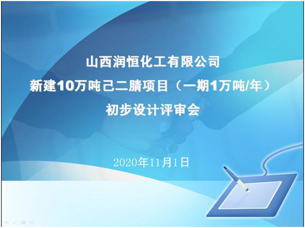 金秋十月,在這個收獲的季節(jié)里,我公司的山西潤恒己二腈項(xiàng)目評審會克服疫情的影響如期在天津渤化工程有限公司召開。 山西潤恒化工有限公司新建10萬噸己二腈項(xiàng)目(一…