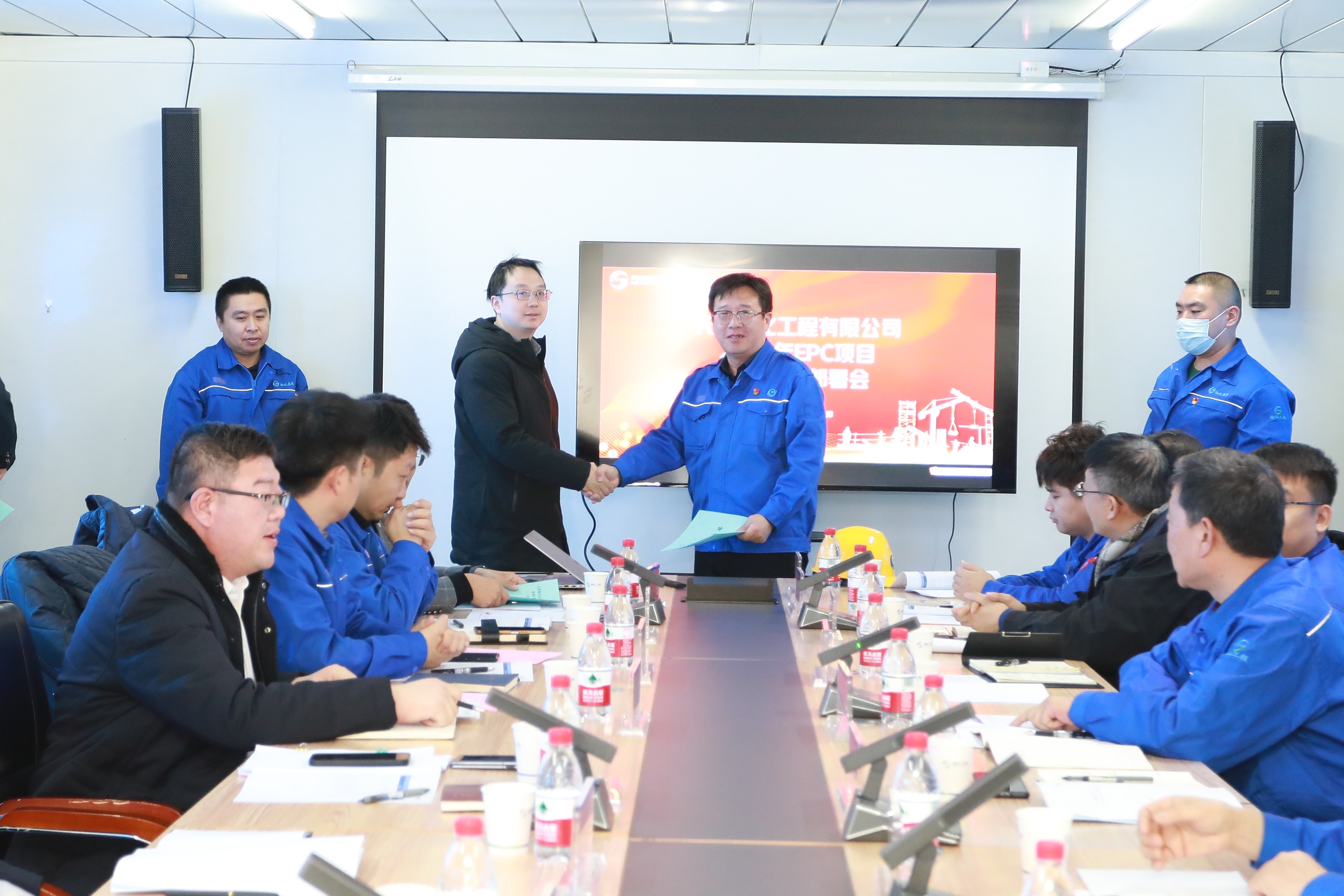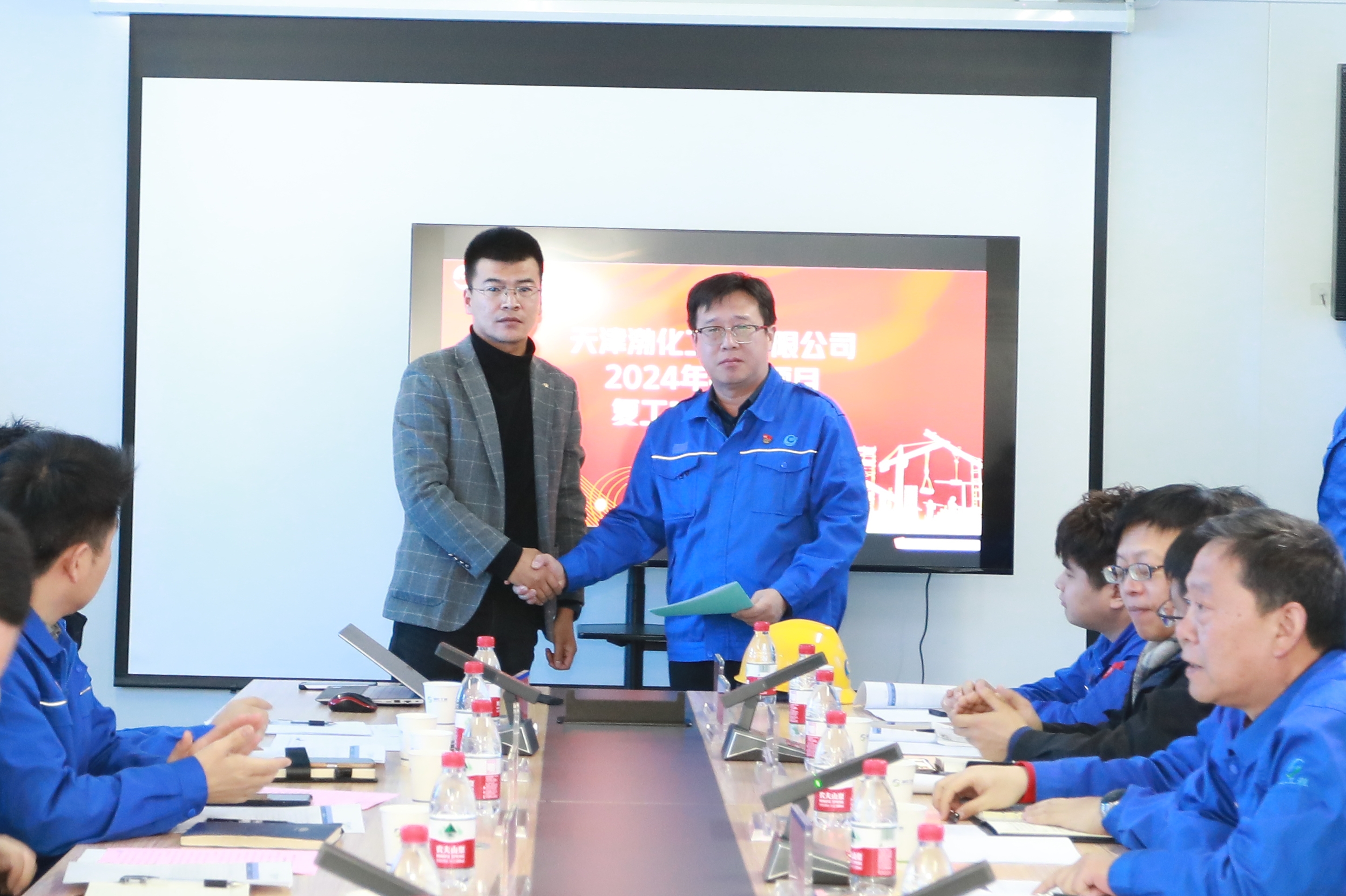 會議涉及天津渤化化工發(fā)展有限公司“兩化”搬遷改造項目二期氯堿一體化裝置項目——30萬噸/年離子膜燒堿項目和綜合實驗樓項目,天津渤化永利化工股份有限公司——煅燒工序蒸汽余壓發(fā)電項目和新建4號事故應(yīng)急池項目。天津渤化化工發(fā)展有限公司領(lǐng)導(dǎo)陳慶同及相關(guān)部室負責(zé)人,天津渤化永利化工股份有限公司純堿分廠黨支部書記史換順,天津渤化工程有限公司黨委書記、董事長詹宏智,以及各項目監(jiān)理及施工單位項目相關(guān)負責(zé)人參加了會議。 會議觀看了安全施工生產(chǎn)警示教育紀錄片,對重點EPC項目復(fù)工方案進行了介紹,各項目EPC聯(lián)合體施工單位項目經(jīng)理遞交了安全保證書,項目監(jiān)理及施工方主要負責(zé)人分別對項目復(fù)工工作進行了表態(tài)發(fā)言。