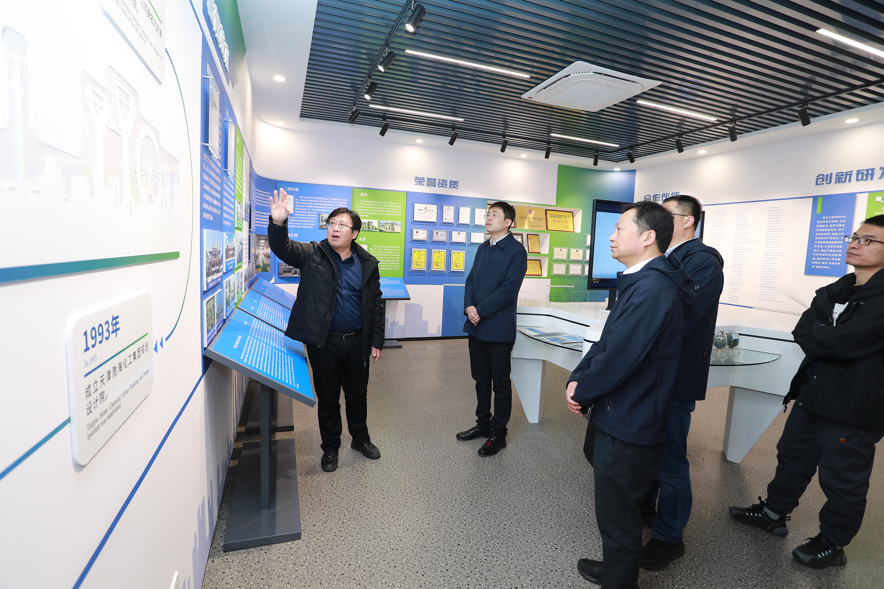 考察團(tuán)一行首先參觀了渤化工程侯德榜雕像和多媒體展廳,隨后在公司會(huì)議室進(jìn)行溝通交流。蔣澤宇介紹了江河園區(qū)的相關(guān)情況,并與渤化工程就該化工園區(qū)中七臺(tái)河科技小鎮(zhèn)項(xiàng)目產(chǎn)業(yè)發(fā)展方向、建筑風(fēng)格,公用配套設(shè)施等具體問(wèn)題進(jìn)行了交流討論,雙方針對(duì)園區(qū)的特點(diǎn)及后續(xù)招商、發(fā)展規(guī)劃等方面進(jìn)行了深入的探討分析。