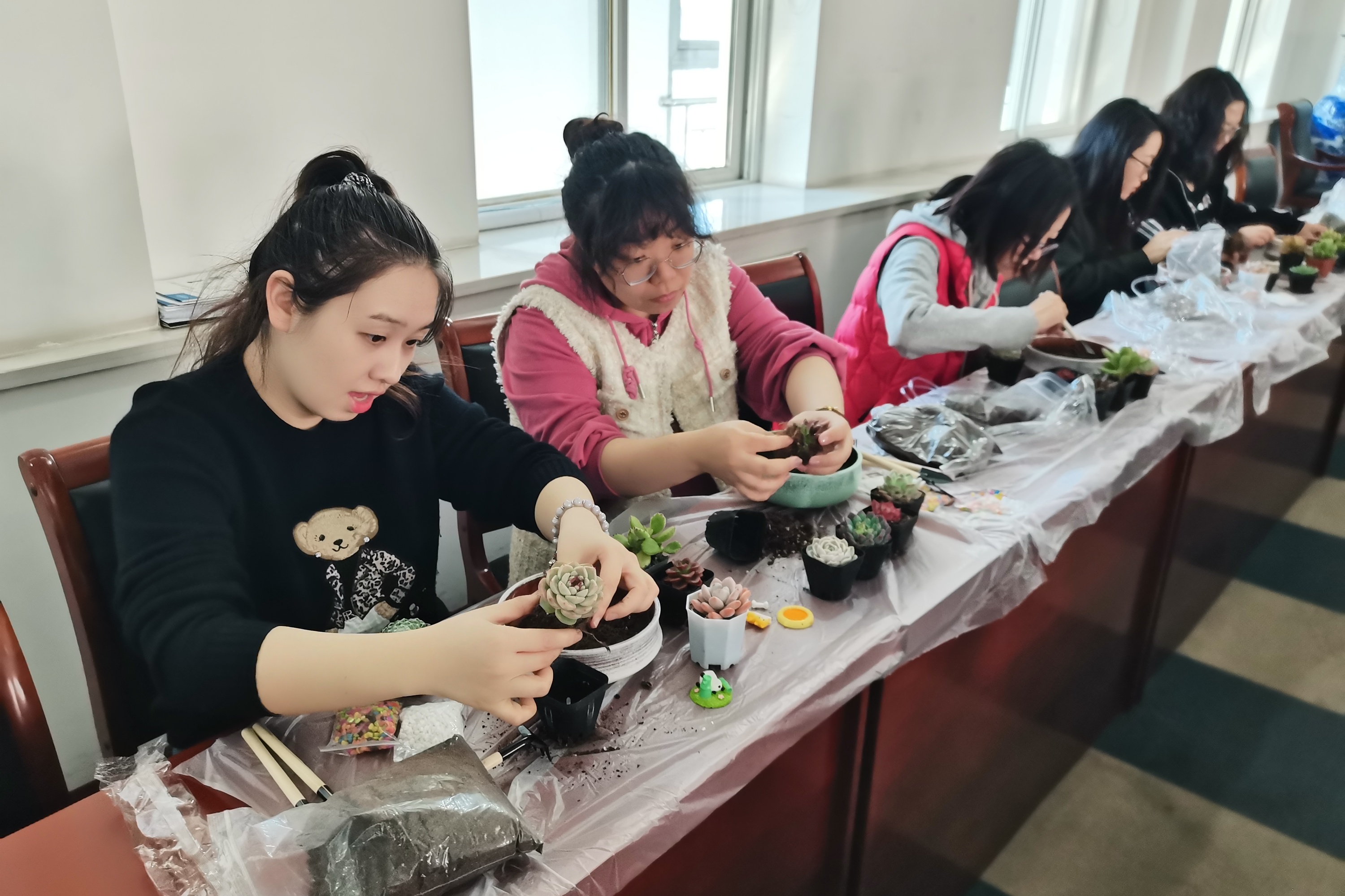 “綠意映紅妝匠心塑春光”——渤化工程 “三八節(jié)”多肉盆栽DIY 2025-03-07 16:35:57 Your browser is not supported 為慶祝第115個(gè)“三八”國際勞動(dòng)?jì)D女節(jié),豐富女職工精神文化生活,倡導(dǎo)綠色健康生活理念,3月6日渤化工程工會(huì)組織開展了“綠意映紅妝匠心塑春光”多肉盆栽DIY主題活動(dòng),百余名女職工齊聚一堂,在春日暖陽中感受指尖藝術(shù)與自然之美的融合。 活動(dòng)伊始,專業(yè)園藝?yán)蠋熗ㄟ^趣味問答和案例分享,向女職工們普及了多肉植物的品種特性、養(yǎng)護(hù)技巧及創(chuàng)意盆栽設(shè)計(jì)理念。從土壤配比到澆水頻率,從色彩搭配到空間布局,生動(dòng)實(shí)用的講解讓在場員工躍躍欲試。在DIY環(huán)節(jié),大家化身“園藝設(shè)計(jì)師”,精心挑選吉娃蓮、虹之玉、生石花等萌態(tài)多肉,搭配多彩陶盆、卡通擺件等素材,有的組合出“沙漠花園”的野趣,有的打造出“童話森林”的治愈,將想象力注入方寸綠意之間。 女職工們紛紛表示,此次活動(dòng)不僅讓她們掌握了園藝知識(shí),更體驗(yàn)到動(dòng)手創(chuàng)作的成就感,親手制作盆栽既能減壓又能裝點(diǎn)辦公室,非常有意義。渤化工程工會(huì)以“三八節(jié)”為契機(jī),通過特色文化活動(dòng)展現(xiàn)女性風(fēng)采,倡導(dǎo)低碳環(huán)保理念,助力打造幸福企業(yè)。