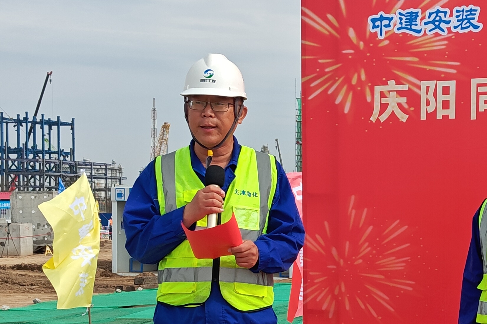 渤化工程施工管理部部長李強匯報了項目進展情況,自2024年11月開工以來,現(xiàn)場團隊攻堅克難,打造冬季施工樣板工程,春節(jié)后響應(yīng)業(yè)主“百日攻堅”勞動競賽號召,明確安全、質(zhì)量等六大目標(biāo),土建施工、設(shè)備安裝等工作按節(jié)點穩(wěn)步推進。李強表示項目順利推進離不開中化學(xué)裝備科技公司團隊的努力,101名工作人員11個月的堅守為反應(yīng)器制造高質(zhì)量交付和吊裝就位打下了堅實基礎(chǔ)。